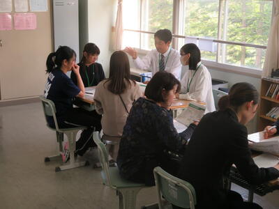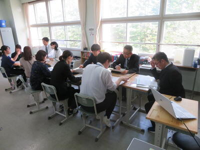 30分での話し合いで一見、中学生に関わる部分が多いので、小学校の先生方には関わりづらい内容かと思いましたが、学校が変化し小学生が中学生になる時に関わることなので、真剣かつ分からないことは聞きたい、という意欲がみなぎる研修になりました。