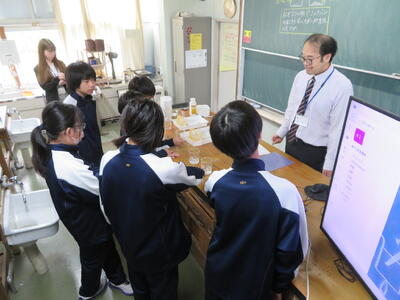 1年生理科では、ミョウバンの結晶を大きく作る実験をしていました。