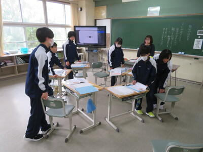 今日は、中学校だけの校内でしたが(小学校は運動会の振休)、宗谷教育局の松嶋教育主事をお招きして、授業研修を行いました。