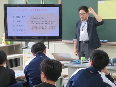 先生は、②友人の距離に注目させ、どんなに友人であっても、自分の距離と相手が思う距離が違うこと。そして、自分が嫌だと感じたら「嫌だ」と言えること。相手に「嫌だ」と言われたら、相手のことを思い巡らして自分の行動をやめることを伝えました。気をつけていきましょう。