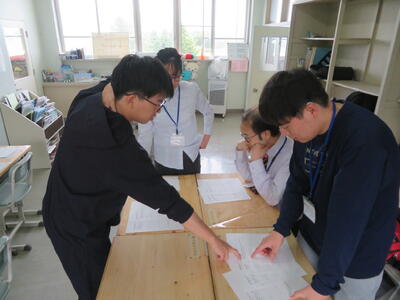 グループに分かれて先生と相談していました。どんどん形になってきているので、分からないことを互いに聞きあって形にしていきましょう。