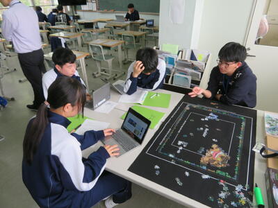 お互いの教室に入ることがないので、中学校教室に「なんでパズルがあるの~?」と小学生も興味津々でした。
