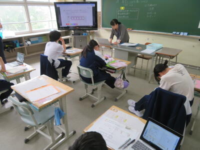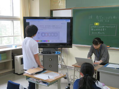 普段の授業のICT活用現状を見ていただきました。1年数学です。