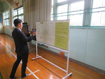 菊地先生は、体育の授業で確認した目当てや注意事項のボードを撮影していました。ICT化できる部分があったのかも知れません。菊地先生は小学校の授業も見学されました。
