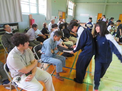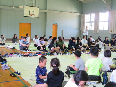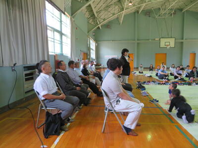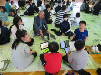 地域の方々は、身振り手振りを加え、時には小学生を膝前に座らせながら、小中学生に語ってくれました。