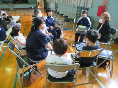 テーマは「熱中症対策」。普段、学級で勉強しているときの暑さの様子や、学校や教育委員会が実施している校舎の環境整備について交流しました。