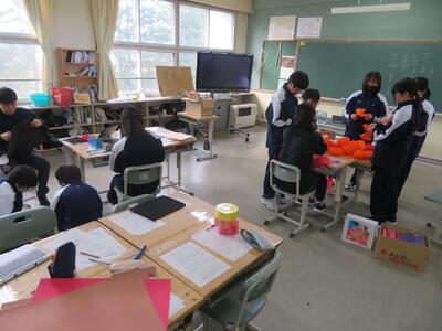 こちらは展示係です。教科作品を展示するための飾り付けをつくっていました。