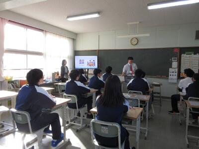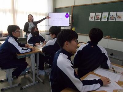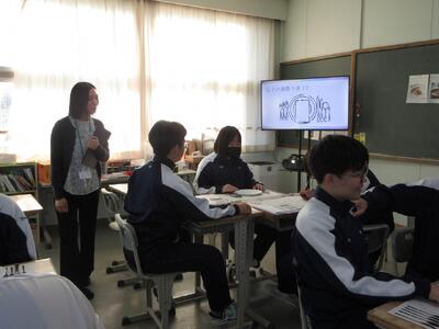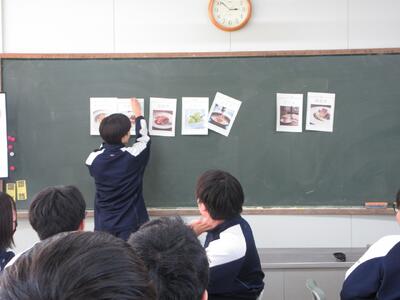今日の6時間目,栄養教諭による「食に関する指導」を3年生で行いました。