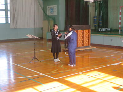 当初は中学生のみの壮行会でしたが、小学校のご配慮により、小中全員での壮行会となりました。
