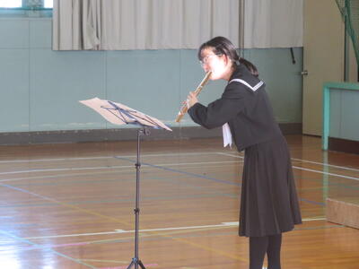 給食を食べた直後でしたが、ピアノを演奏する先生と息の合った演奏で、とても聴き応えのあるフルート演奏でした。