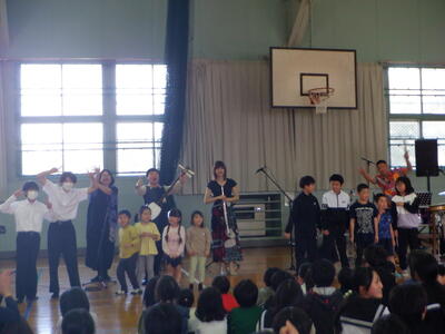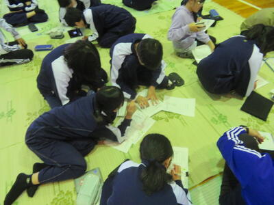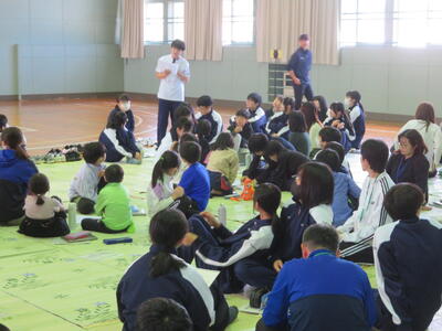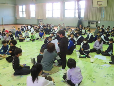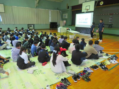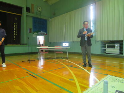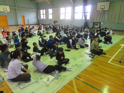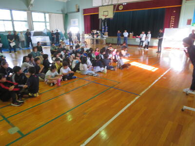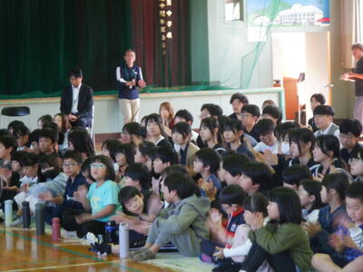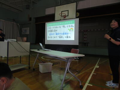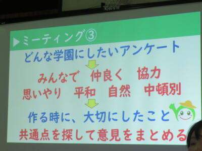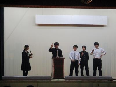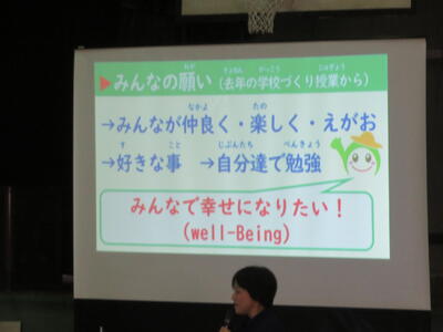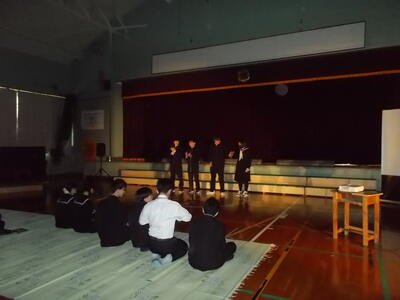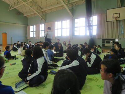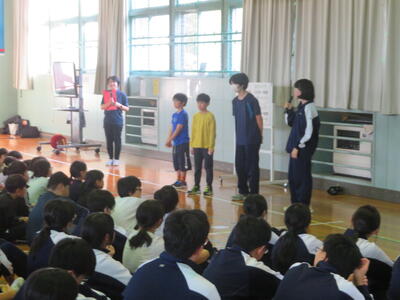 それぞれの学びをコミカルに,全員が役割を持って発表していました。裏では助け合いもあって無事にできたようです。