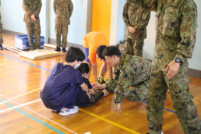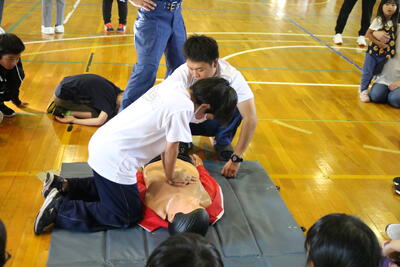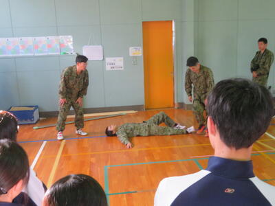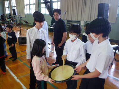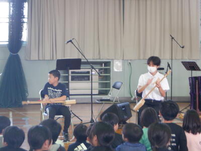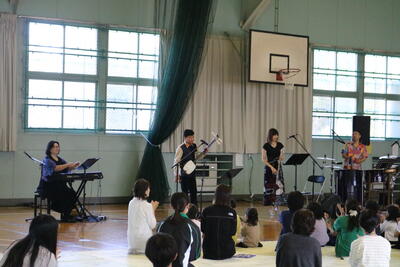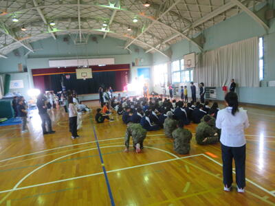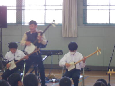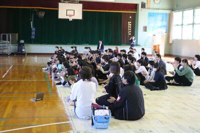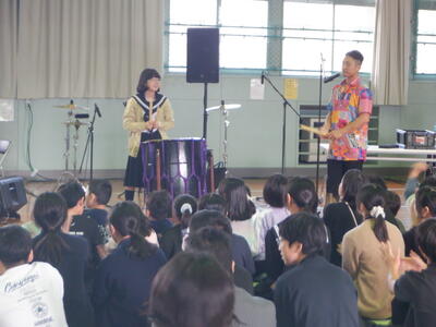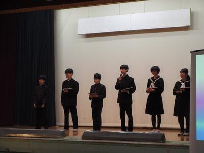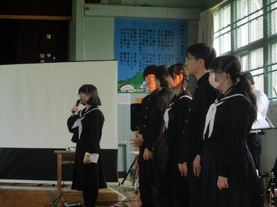 最初は吹奏楽発表。3名の演奏でしたが,それぞれの楽器の音色に深みがあり,聞いている生徒もサイリウムを振って応援しました。
