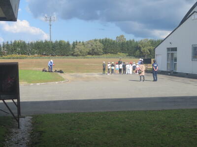 見学した施設も紹介。「民族共生象徴空間ウポポイって,何て長い名前~!」っとツッコミで紹介。アイヌの楽器「ムックリ」を買った生徒と先生で演奏も披露しました。