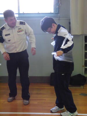 最後は3年男子グループ。途中は担任も登場し,放課後も場所を見つけてはみっちり練習した成果を惜しみなく披露しました。