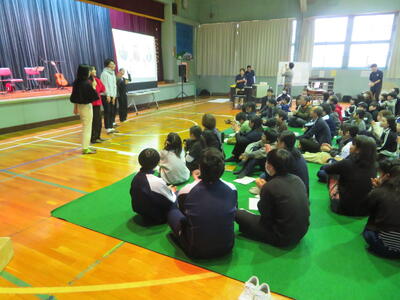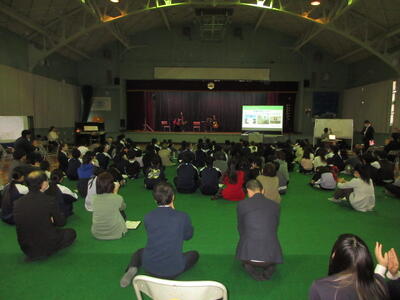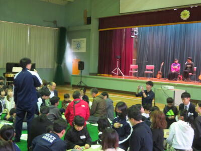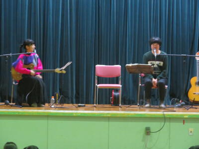 昨年度も,校歌づくりで中頓別に来町いただいた成山剛さん,Chimaさんによる歌披露がありました。