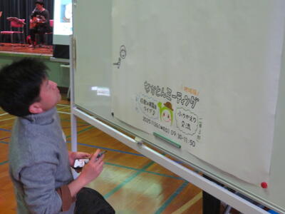 4番目に手を上げたのは,途中から参加してくれたこども園の年中さん。「うれしい気持ちの歌です」と発表してくれました。