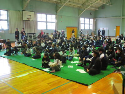 9時30分,小学生51名,中学生34名,ゲスト20名,町内参加者40名ちょっと,計160名ででお披露目会が始まりました。